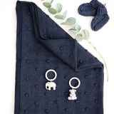 This intricately detailed children's rattle is made by hand from either pure 925 Sterling silver or brass with a high-quality silver plating. The rattle in the shape of a teddy bear is attached to a plastic teething ring. Thanks to the antibacterial effect of silver and the cooling surface, the rattle not only serves as a toy, but is also an ideal teething aid. With a height of 4.8 cm, the rattle fits perfectly in small baby hands and the resounding sound soothes and brings joy. This beautiful children's toy is ideal for both boys and girls and makes a stylish gift for births, christenings or any other occasion.