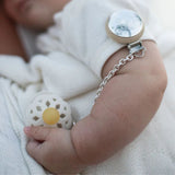 Diese besondere Schnullerkette aus feinstem 925/- Sterling Silber ist mehr als nur ein Accessoire – sie ist ein wertvolles Erinnerungsstück für die Kleinsten. Mit einer Länge von 21 cm und einer liebevoll gearbeiteten Gravurplatte von 3,2 cm wird sie zum eleganten Begleiter, der Geborgenheit und Liebe ausstrahlt.