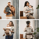 - 4 Tragepositionen ermöglichen eine individuelle Anpassung während allen Wachstumsphasen: Mit Sitzerhöhung für Neugeborene, rückwärtsgerichtet, vorwärtsgerichtet oder auf dem Rücken getragen