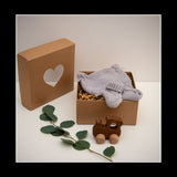 Strickmütze und Stricksöckchen: Ergänzt wird die Box durch eine weiche Strickmütze und dazu passende Söckchen aus 100% Bio-Merinowolle. Diese hochwertige Wolle ist besonders hautfreundlich, atmungsaktiv und temperaturregulierend – perfekt, um Babys jederzeit warm und geborgen zu halten.